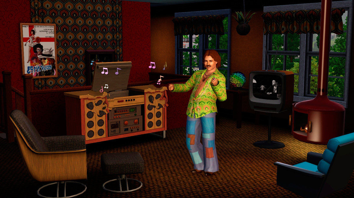 70-е года подарят вашим Симам модную одежду этого десятилетия, ваши подопечные будут выглядеть потрясающе в стильном топе и джинсах клеш. Также ожидайте мебель в стиле 70-х, это украшение в виде зеркального шара, стереосистема и многое другое.